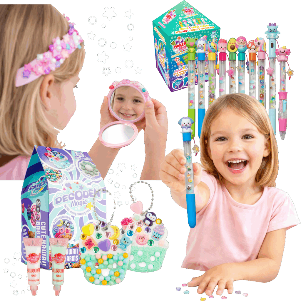 Het is tijd voor magic met Pen Maker Magic en Decoden Magic! Met de Decoden Magic knutselpakketten maak je je eigen schattige haaraccessoires, sieradendoosje of unieke tashangers die je helemaal zelf mag ontwerpen met 3D puffy lijm en allerlei kleurrijke kralen en leuke bedeltjes. In de pakketten vind je ook 3D-stickers om te versieren met de puffy lijm, kralen en bedels. Plak ze op je telefoonhoesje, waterfles of spiegel en alles verandert in een klein kunstwerk!