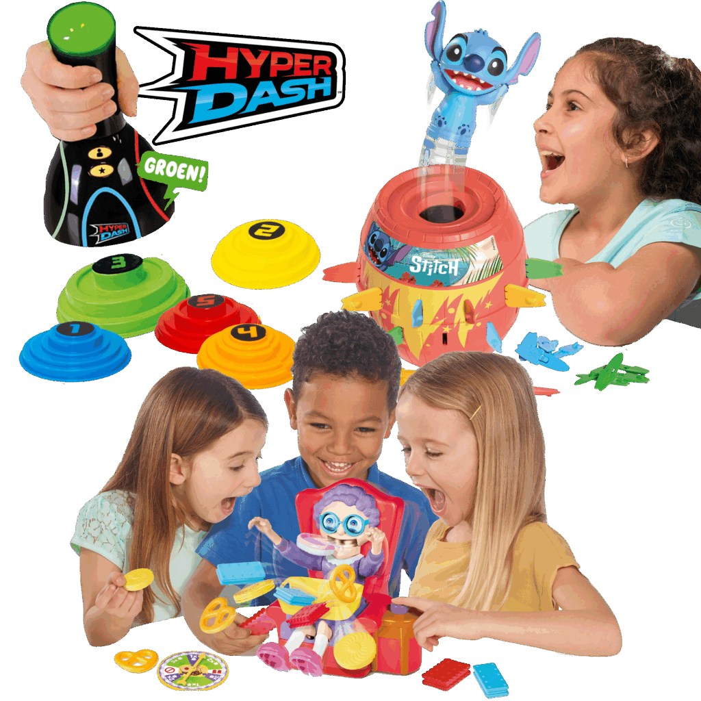Of je nu 4 bent en net leert wat winnen en verliezen betekent, 16 en niet kan stoppen met lachen met je vrienden, of 60 en geniet van een gezellige spelletjesavond met de familie – er is altijd een spel dat perfect bij jou past. Van kleurrijke pop-up spelletjes voor de allerkleinsten, waarin actie en reactie zorgen voor spannende verrassingen, tot hilarische opdrachtenspellen waarbij de hele kamer in een deuk ligt. Van slimme solo-uitdagingen om je brein te prikkelen tot complete familieknallers die iedereen om de tafel samenbrengen.